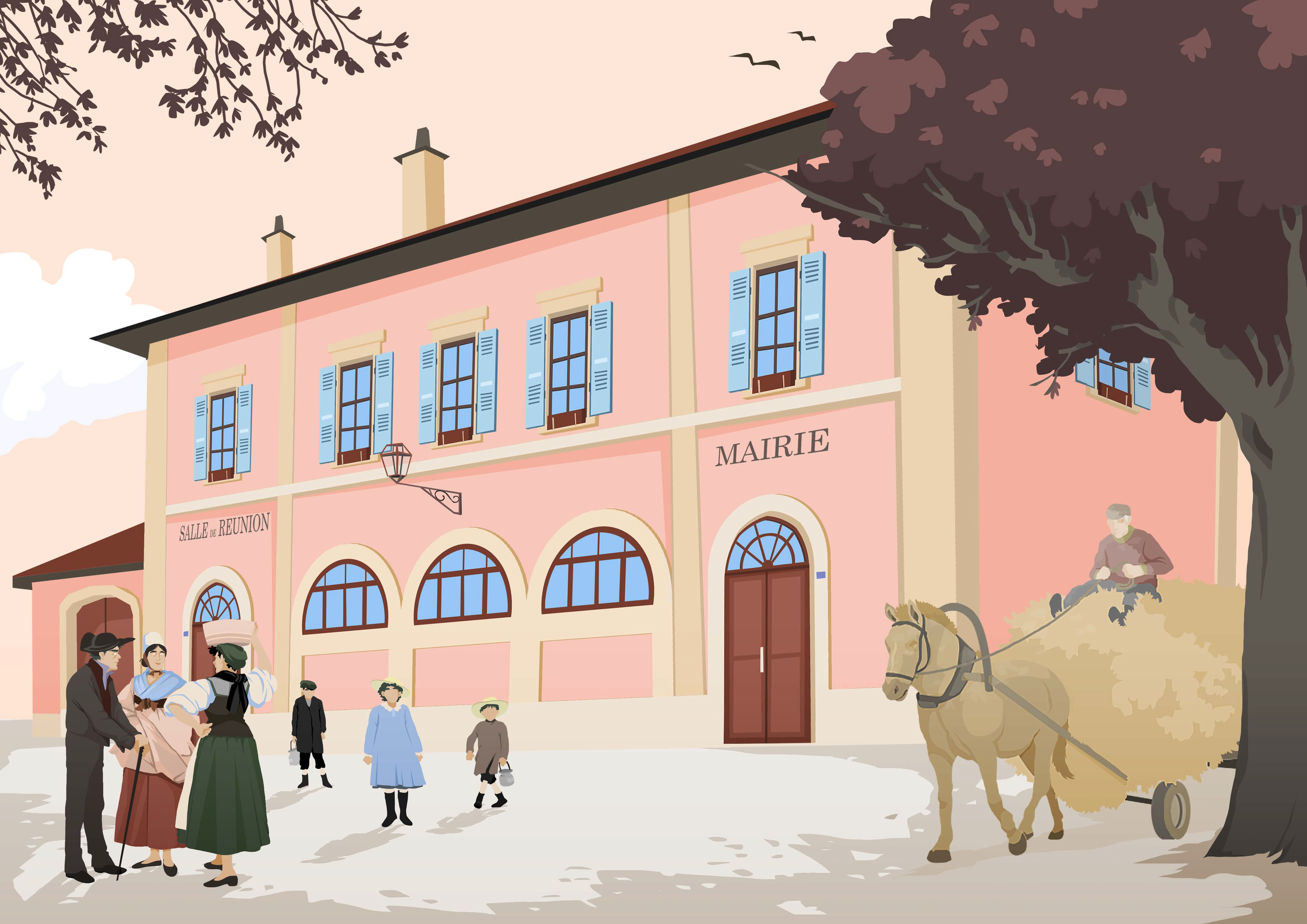 Illustrations réalisées pour le calendrier communal 2026 de la commune de Plan-les-Ouates, dans le canton de Genève. Le calendrier a pour vocation d’explorer l’histoire de la commune de manière visuelle.